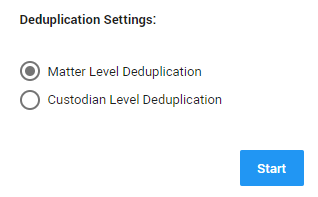 To detect duplicate files on matter level (the whole data set in a matter is processed), select Matter Level Deduplication.