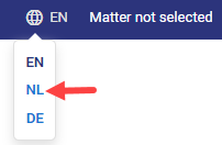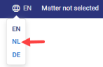 Als u hier met uw muis overheen gaat, verschijnt er een menu. Hier kunt u op NL drukken om de taal naar Nederlands te veranderen.