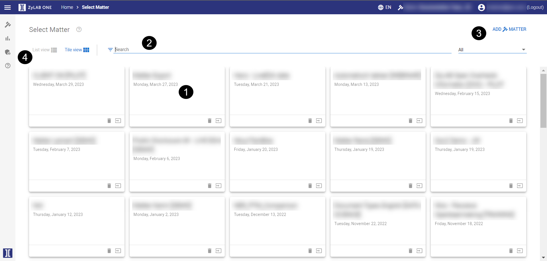 3. Hier kunt u een nieuwe zaak aanmaken met de knop Add Matter.