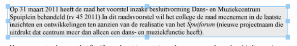 Om een grond toe te voegen aan een aflakking selecteert u de aflakking, dit doet u door eenmaal op de aflakking te klikken. U ziet dat de aflakking geselecteerd is doordat deze doorzichtig wordt en er 6 blauwe vierkanten om het vlak verschijnen. U kunt deze vierkanten gebruiken om de grootte van de aflakking aan te passen. Ook is het mogelijk om de aflakking te verschuiven.